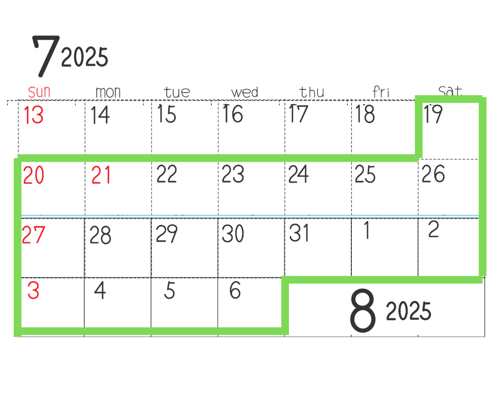 2025年の夏土用は 2025年7月19日(土) から 8月6日(水) までの約18日間の期間をいいます。