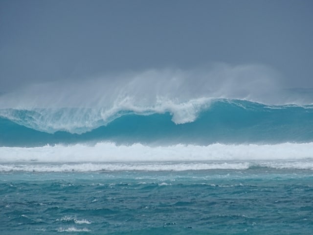 夏の土用のころに海岸に打ち寄せつ大波。台風の影響を受けてうねりのあるもの。