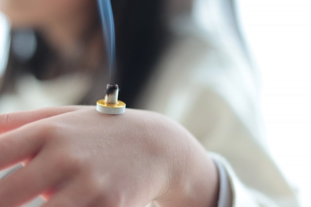 夏の土用に据える灸。夏バテや病気の回復に効果があるとされます。